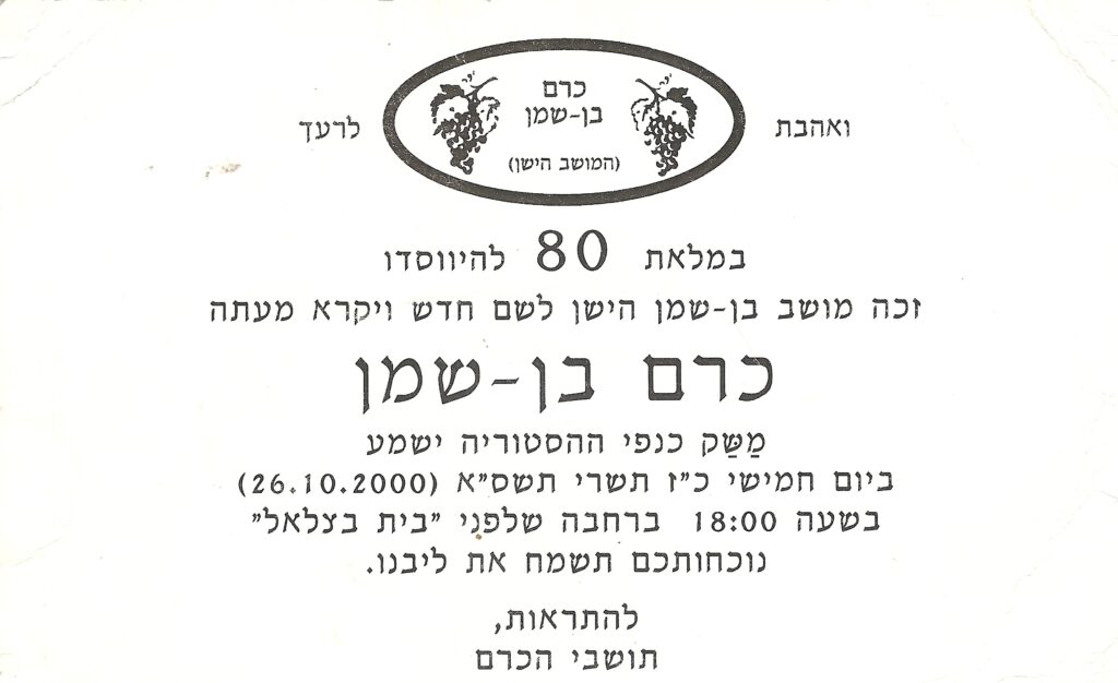 בשנת 1920 התאגדו שתים עשרה משפחות מבוגרי חוות בן שמן שננטשה במהלך מלחמת העולם הראשונה, והקימו את "מושב עובדים בן שמן", בדומה לנהלל וכפר יחזקאל.